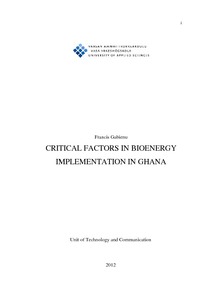 The paper talks also about the growth of different Bioenergy systems available for decision making within the various institutions and industry for administrative purposes. The following critical factors are identified, know-how in the various Bioenergy companies, economic conditions and supply chain coordination. They are affecting the Bioenergy industry in Ghana positively and negatively.