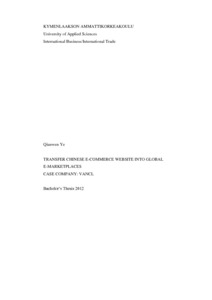 Conducting this research was aimed to examine and identify appropriate ways to transfer Chinese e-commerce website into global e-marketplaces by taking VANCL as the case company, and concerning the differences and challenges in global e-marketplaces. In addition, this research was intended to propose suggestions not only for case company, but also for China’s B2C online retailers.