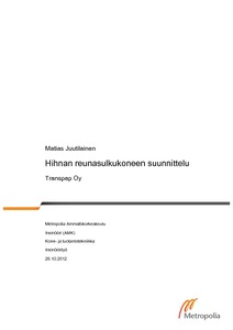Tämä insinöörityö tehtiin Transpap Oy:lle. Työn tarkoitus on suunnitella ja kehittää ja hih-nan reunasulkukone. Tavoitteena oli kehittää varma ja luotettava hihnan reunansulatus-menetelmä, jota yritys voisi hyödyntää tuotteissaan. Sulatusmenetelmän lisäksi suunnitel-tiin koneen loputkin osat ja runko kokonaisuudessaan. Lisäksi työssä kerrotaan kuljetin-hihnoista, niiden historiasta, käytöstä, ominaisuuksista ja elintarvikestandardeista.