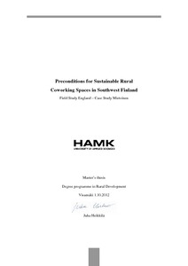 Preconditions for Sustainable Rural Coworking Spaces in Southwest Finland : Field Study England - Case Study Mietoinen