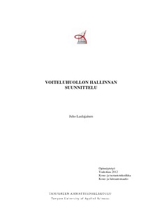 Tämän opinnäytetyön tarkoituksena oli perehtyä Nokian Renkaiden voiteluhuoltoon ja sen hallintaan. Voiteluhuollon kannalta työssä etsittiin vaihtoehtoja voitelukohteiden ja aineiden identifiointiin ja töiden hallinnassa pohdittiin, mitä eri ominaisuuksia töiden-hallintajärjestelmän tulisi sisältää.