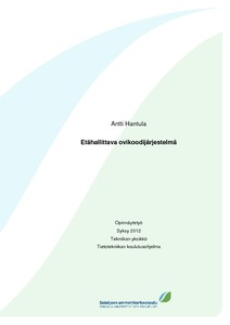 Tämän opinnäytetyön tavoitteena oli kehittää yksinkertainen ja edullinen etähallittava ovikoodijärjestelmä. Laitteisto koostuu oven vieressä olevasta numeronäppäimistöstä sekä langattomasta lähettimestä ja vastaanottimesta, jotka on kytketty Raspberry Pi -nimiseen yhden piirinlevyn Linux-tietokoneeseen ja palveluntarjoajan tietokoneeseen. Hallintasovellusta käyttämällä palveluntarjoaja voi määrätä ovikoodin ja sen voimassaoloajan. Ovi avataan jos käyttäjä syöttää koodin oikein, ja suljetaan kun voimassaoloaika päättyy. Tiedonsiirto tapahtuu matkapuhelinverkon kautta tekstiviestillä. Ohjelmoinnissa käytettiin C#-kieltä hallintasovelluksen osalta, ja C++:aa vastaanotettujen viestien käsittelyyn.