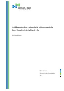 Tämän opinnäytetyön tavoitteena on selvittää, mitä asiakas odottaa myyjältä ensimmäisellä asiakastapaamisella ja antaa kehitysehdotuksia toimeksiantajayritykselle. Opinnäytetyö tehtiin kesän 2012 aikana toimeksiantona Henkilöstöpalvelu Efectivo Oy:lle. Tällöin työntekijä opiskeli HAAGA-HELIA ammattikorkeakoulussa ja samaan aikaan työskenteli toimeksiantajayrityksessä.