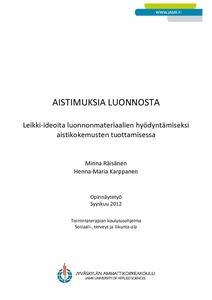 Opinnäytetyö käsittelee luontoympäristön hyödyntämistä aistikokemusten tuottamisessa lasten leikkitoiminnan näkökulmasta. Työ koostuu kahdesta osasta; raportointiosuudesta sekä kirjallisuuslähteiden ja tutkimusten tulosten pohjalta kootusta Aistimuksia luonnosta - materiaalipaketista. Työn tilaajana toimii Luonto-Liitto, joka julkaisee materiaalipaketin omilla Internet-sivuillaan. Opinnäytetyön teoriaosuudessa tarkastellaan ihmisen aistitoimintoja ja niiden kehitystä lapsuudessa, leikin merkitystä lapsen kehitykselle sekä luontoympäristön ilmiöitä ja materiaaleja. Tutkimusosuudessa esitellään materiaalipaketin kokoamiseen liittyneen kyselytutkimuksen toteutus ja tulokset sekä materiaalipaketin kokoamisen eri vaiheet.