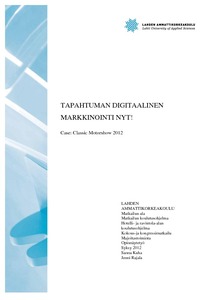 Opinnäytetyömme tavoitteena on selvittää miten digitaalisin markkinointiviestinnän keinoin tavoitamme tapahtuman potentiaaliset kävijät. Selvitämme digitaalisen markkinoinnin keinoja Classic Motorshow-tapahtuman kautta eli etsimme tehokkaita ja uusia keinoja, jotka soveltuvat parhaiten erikoistapahtuman käyttöön. Työmme toimeksiantajana toimii RLO Events Oy, joka järjestää vuosittain Classic Motorshow -tapahtuman Lahdessa.