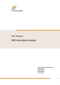 Tässä insinöörityössä selvitettiin Metropolia Ammattikorkeakoulun Bulevardin toimipisteessä olevan häiriösuojatun tilan soveltuvuutta standardien mukaisiin päästömittauksiin. Työssä tehtiin erilaisten laitteiden päästömittauksia. Saaduista tuloksista pääteltiin, soveltuvatko tilat kaupallisesti markkinoitaviin EMC-päästömittauksiin. Apumateriaalina käytettiin innovaatioprojektiryhmän tekemiä mittauksia huoneesta.