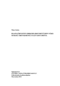 Tämän opinnäytetyön tavoitteena oli selvittää haapajärvisten erikoisliikeyrittäjien käsityksiä yrityksiensä tulevaisuudesta. Työssäni selvitin yrittäjien käsityksiä kilpailukeinojen käytöstä haapajärvisissä erikoisliikkeissä ja käsityksiä ostovuodon syistä haapajärveltä. Selvitin myös millaisia uhkakuvia ja mahdollisuuksia yrittäjät näkevät tulevaisuudessa toiminnassaan. Lisäksi yrittäjät saivat esittää toiveita muille yrittäjille ja Haapajärven Yrittäjät Ry:lle toiminnan kehittämiseksi.