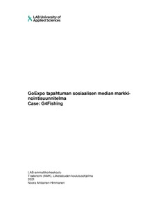 Opinnäytetyön aiheena on GoExpo tapahtuman sosiaalisen median markkinointisuunnitelma. Työ on toiminnallinen ja toimeksiantajana toimi G4Fishing yrittäjä Teemu Himmanen.