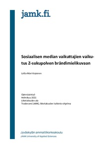 Opinnäytetyössä tutkittiin sosiaalisen median vaikuttajien merkitystä Z-sukupolven brändimielikuvaan. Tavoitteena oli selvittää, että miten sosiaalisen median vaikuttajat muuttavat brändimielikuvaa, voiko uusia mielikuvia muodostua vaikutuksen myötä sekä mihin brändiassosiaatiohin pystytään vaikuttamaan eniten. Vaikuttajamarkkinoinnin kenttä on koko ajan kasvussa, mutta sosiaalisen median vaikuttajien vaikutusta ei ole vielä tutkittu brändimielikuvien kannalta, jonka takia kyseinen aihe valikoitui.
