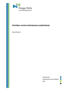Tavoitteena opinnäytetyössäni oli selventää yksilöurheilijan verotusta kotimaisessa ympäristössä. Työssäni käyn lävitse urheilijan erilaisia ansaintamalleja ja tapoja, miten urheilijan ansiot koostuvat. Näiden lisäksi käsittelen urheilijan käytössä olevia rahastoja sekä esimerkeillä vertailen eri tapoja tulouttaa ansioita. Opinnäytetyö toteutettiin vuoden 2020 ja 2021 aikana. Työ perustui pitkälti verotuksen lakeihin, joten tutkimusmenetelmänä käytin kvalitatiivista tutkimusmenetelmää.