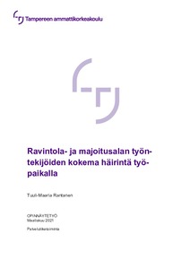 Opinnäytetyöni käsittelee häirinnän ja epäasiallisen käytöksen ilmenemistä palvelualan työyhteisöissä. Tutkimuskohteena työssä on häirinnän laatu, esiintyvyys ja jakaantuminen, sekä häirintään puuttumisen tavat ravintola- ja majoitusalan työpaikoilla. Tutkimus toteutettiin monimenetelmäisenä kyselytutkimuksena, jossa kyselyaineistoa arvioitiin kvantitatiivisin menetelmin ja tulkintoja tehtiin laadullisen sisällönanalyysin menetelmiä mukaillen. Opinnäytetyön toimeksiantaja on nimettömänä pysyttelevä suuri matkailu- ja ravintolapalveluiden työllistäjä ja kysely toteutettiin tämän yrityksen työntekijöiden keskuudessa. Toimeksiantaja on jätetty mainitsematta haastateltavien yksityisyydensuojan varmistamiseksi ja tutkimuskohteen arkaluontoisuuden vuoksi.