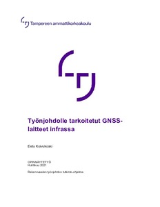 Tässä opinnäytetyössä selvitettiin markkinoilla olevien GNSS-laitteiden kannattavuutta ja käytettävyyttä infratyömaalla. Työn aikana käytettävyyteen tutustuttiin Leican laitteella. Kannattavuuden arvioimiseksi työssä käytettiin vertailukohtana työmaata, jolla ei ollut käytössä vastaavaa laitetta.