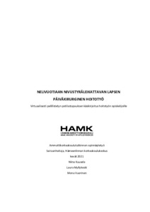 Tämä toiminnallinen opinnäytetyö toteutettiin yhteistyössä Hämeen ammattikorkeakoulun hyvinvointiyksikön kanssa. Raporttiosuuden tarkoitus oli koostaa teoriatietoa lapsen päiväkirurgisesta hoitotyöstä, jossa keskitytään nivustyrää sairastavan lapsen pre- ja postoperatiiviseen hoitotyöhön. Opinnäytetyön tavoitteena oli luoda käsikirjoitus pelillistetystä potilastapauksesta, joka liitetään myöhemmin hoitotyön opiskelijoille virtuaaliseen oppimisalustaan.