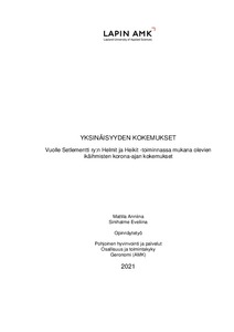 Johtopäätökset tutkimuksen osalta osoittivat muutoksia ikäihmisten arjessa, sekä yksinäisyyden lisääntymistä. Keskeytyneiden harrastetoimintojen tilalle ikäihmiset olivat lisänneet mm. ulkoilua. Hankkeesta ja sen tukimuodoista, kuten kauppa-avusta ja puhelinsoitoista koettiin olevan hyötyä korona-aikana. This thesis was carried out as a qualitative study. The purpose was to find out, by using a thematic interview, about the experiences of loneliness and challenges in everyday life of the elderly involved in Vuolle Setlementti ry Helmit and Heikit -project during the exceptional circumstances caused by the Covid–19 pandemic. The aim was to get information about the effects of the pandemictime on older people based on their own experiences. With the help of the gathered information the commissioner of this thesis can potentially develop their activities and services.