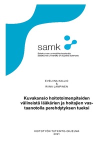 Opinnäytetyömme toimeksiantajana oli Eurajoen terveysasema. Opinnäytetyön tuotoksena syntyi kuvakansio hoitotoimenpiteiden välineistä sekä lyhyet kuvaukset niiden käytöstä. Kuvakansio on erityisesti suunniteltu uusille työntekijöille, sijaisille sekä opiskelijoille, jotka voivat tarvittaessa tarkistaa kansiosta toimenpiteeseen tarvittavat hoitotoimenpidevälineet.