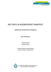 Opinnäytetyö tehtiin yhteistyössä Maskun neurologisen kuntoutuskeskuksen kanssa. Opinnäytetyössä on tarkasteltu MS-taudista johtuvien kognitiivisten haasteiden vaikutusta päivittäisiin toimintoihin. Lisäksi opinnäytetyössä on koottu yhteen keinoja, joita läheiset käyttävät tukeakseen MS-tautia sairastavien henkilöiden suoriutumista päivittäisistä toiminnoista kognitiivisten haasteiden näkökulmasta.