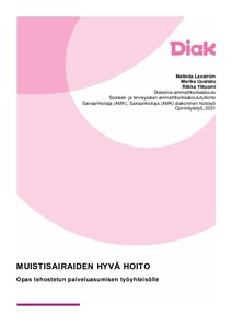 Toiminnallisen opinnäytetyön tarkoitus oli tehdä opas muistisairaiden hyvästä hoidosta tehostetun palveluasumisen työyhteisölle. Idea opinnäytetyölle syntyi työelämän tarpeesta. Oppaan tavoitteena oli syventää hoitajien tietoa vuorovaikutuksen tavoista, antaa erilaisia keinoja kohdata muistisairas ja keinoja ratkaista ongelmatilanteita. Opinnäytetyö pohjautui Muistiliiton hyvän hoidon kriteeristöön, ja tämän lisäksi käytimme useita luotettavia lähteitä materiaalin kasaamiseksi.