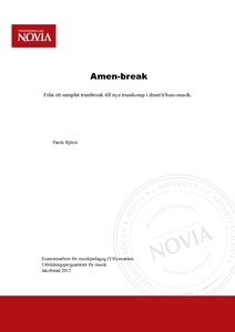 Med nio stycken transkriptioner av trumkomp skapade av amen break har jag undersökt hur rytmiken i detta trumbreak bearbetats för att skapa nya trumkomp i drum’n’bass-musik. Transkriptionerna visar att även om rytmiken i de transkriberade breakbeatsen är väldigt olika, har de även andra gemensamma element förutom att de är skapade av samma trumbreak.