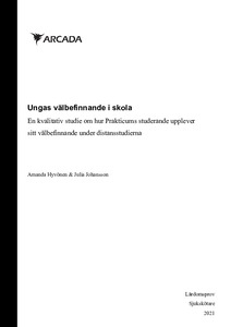 På grund av covid-19 pandemin har skolor övergått till distansundervisning och därmed är välbefinnande i skola ett aktuellt och viktigt ämne att forska i. Syftet med denna studie är att undersöka hur Yrkesinstitutet Prakticums studerande har upplevt sitt välbefinnande i skolan under distansstudierna. Vi har granskat välbefinnande i skola och avgränsat studien till tre teman; vänner och lärare, undervisning och lärandet samt stödtjänster. Frågeställningarna till denna studie har formats på basen av dessa tre teman.