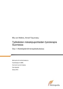 Tarkoitus: Opinnäytetyön tavoitteena on tuottaa tietoa Suomessa vallitsevista epäspesifin niskakivun fysioterapian hoitokäytännöistä työikäisillä. Aiheesta ei ole tehty aikaisempia tutkimuksia. Opinnäytetyö on osa laajempaa selvitystä keskittyen julkisen terveydenhuollon terveyskeskuksiin. Selvityksen muut osat kohdistuvat yksityiseen sektoriin (osa 2), fysiatrian poliklinikoihin (osa 3) sekä kuntoutuslaitoksiin (osa 4). Selvityksen osia on tehty samanaikaisesti edellä mainituilla toimialueilla vuoden 2012 aikana. Menetelmät: Tämän poikkileikkaustutkimuksen otokseen satunnaistettiin sata terveyskeskusta ottaen huomioon sairaanhoitopiirikohtaiset väestöjakaumat. Tutkimukseen osallistui 58 terveysasemaa tai terveyskeskusta. Tutkimuksen aineisto kerättiin käyttäen sähköistä kyselyä, joka lähetettiin 366 fysioterapeutille. Kyselyyn vastasi 93 fysioterapeuttia 14 sairaanhoitopiirin alueelta. Fysioterapeutteja ohjeistettiin vastaamaan kyselyyn viimeisimmän työikäisen niskapotilaan osalta. Kysymykset koskivat harjoittelun sisältöä ja ohjausta, kivunhoitoa sekä yleistä ohjausta ja neuvontaa. Tulokset: Kaikki fysioterapeutit käyttivät terapeuttisia harjoitteita osana niskapotilaan kuntoutusta. Harjoittelun nousujohteisuuden oli kuitenkin huomioinut vain alle puolet vastanneista. Harjoittelun muiden yleisten periaatteiden osalta kehittämisen varaa olisi harjoittelun kestossa ja seurannassa. Vaikka harjoitteluterapiaa käytettiinkin runsaasti, harvat mielsivät harjoittelun osaksi kivunhoitoa. Tulosten perusteella kivunhoidossa edelleen suositaan passiivisia hoitomenetelmiä. Tuloksista nousi esille myös alalla vallitseva täydennyskoulutuksen tarve. Reilu neljäsosa vastanneista ei ollut osallistunut lainkaan niskan kuntoutukseen liittyvään täydennyskoulutukseen valmistumisensa jälkeen. Johtopäätökset: Tulokset osoittavat, että aktiivista terapeuttista harjoittelua ja sen ohjausta käytetään laajalti työikäisten niskakipupotilaiden fysioterapiassa terveyskeskuksissa Suomessa, mutta kivunhoidossa suositaan yhä passiivisia hoitomenetelmiä. Kolme neljäsosaa kyselyyn vastanneista niskakipupotilaita hoitavista fysioterapeuteista on hankkinut aiheesta lisäkoulutusta, mutta neljäsosalta lisäkoulutus puuttuu. Tulokset antavat viitteitä siitä, että terveyskeskusten tulisi tarjota fysioterapeuteille säännöllisempiä mahdollisuuksia päivittää niskan kuntoutukseen liittyvää osaamista.