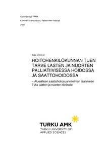 Hoitohenkilökunnan tuen tarve lasten ja nuorten palliatiivisessa hoidossa ja saattohoidossa : alueellisen saattohoitosuunnitelman laatiminen Tyks Lasten ja nuorten klinikalle