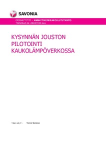 Opinnäytetyön tavoitteena oli tarkastella teknisesti ja taloudellisesti kestäviä ratkaisuja ja menetelmiä, jotta kaukolämmön kysyntäjoustoa voitaisiin toteuttaa laajemmassa mittakaavassa Alvan kaukolämpöverkossa. Lisäksi tavoitteena oli hyödyntää pilotissa saatuja kokemuksia ja tuloksia sekä ymmärtää, kuinka kaukolämmön kysyntäjoustoa tulisi Jyväskylässä jatkossa toteuttaa, jotta se palvelisi mahdollisimman hyvin niin asiakkaita kuin energiayhtiötä. Opinnäytetyössä pilotoitiin kaukolämmön kysyntäjoustoa neljän eri järjestelmätoimittajan ja viiden erilaisen kiinteistön kanssa.