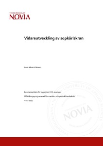Resultatet av arbetet är fullständiga ritningar och 3D-modeller från komponentnivå till den fullständiga kranen. Vidareutvecklingen innehåller också utnyttjande av befintliga komponenter från företagets register för att undvika skapande av identiska komponenter. This bachelor´s thesis is made for the company Oy Närpes Trä och Metall Ab. The company manufactures truck bodies for refuse collection and transportation. The task was assigned by the aftermarket division and the purpose was to document and further develop a waste handling crane for sales and manufacturing. The goal was to get a 3Dmodel of the crane for usage in the company’s own webshop NTM Service Online.