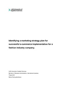 The objective of the research study was identifying a marketing strategy plan for successful e-commerce implementation of the Eirene Oy - a business from fashion industry. The company has only the physical store and an e-commerce store which is not bringing any profit. In the pandemic situation there is a need of selling and promotion in the online environment. The main aim of the created marketing plan was to increase brand awareness and attract more clients outside of Finland for the case company.