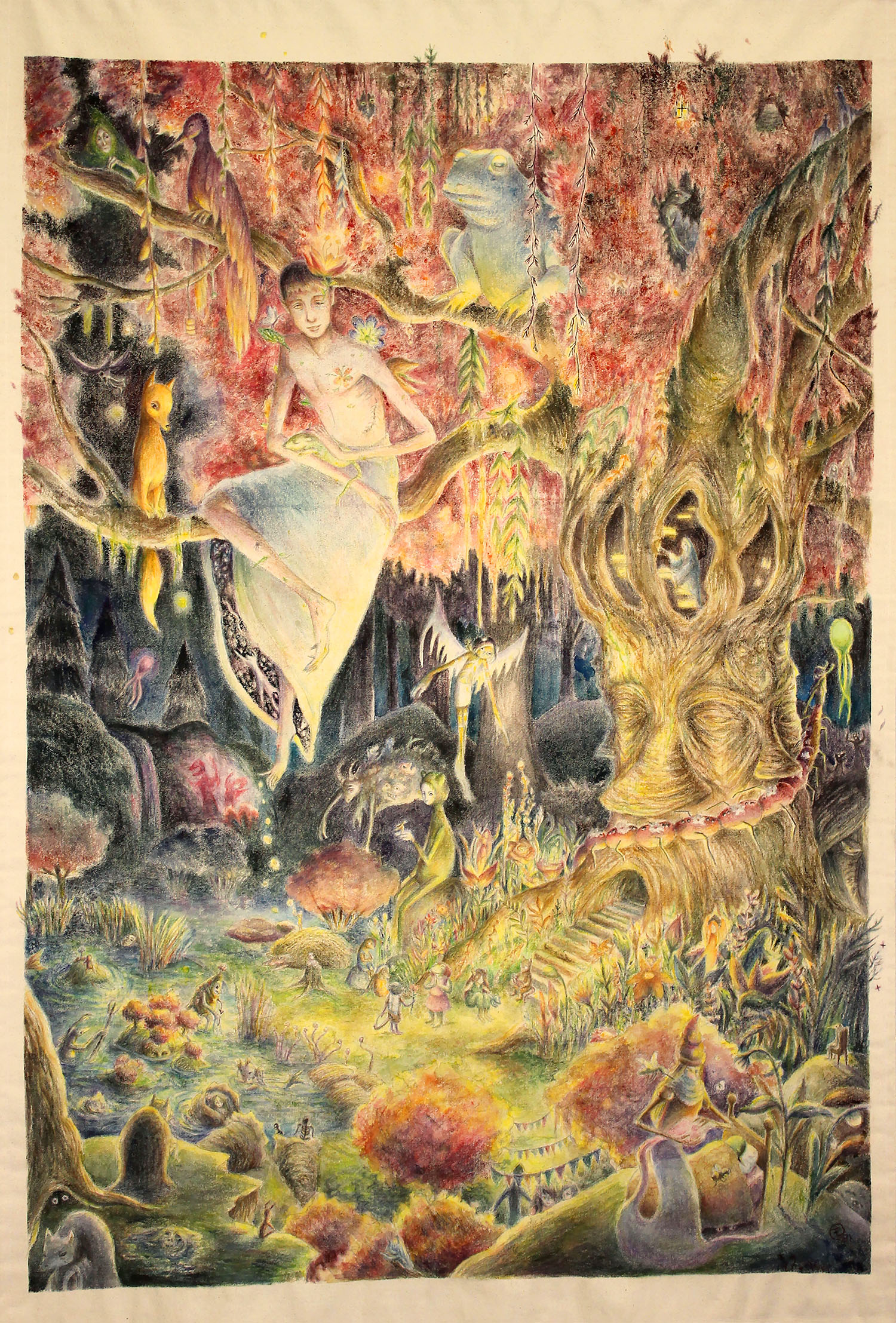 Lopuksi fantasia-aiheisen ”Kaikki luomani ympärilläni” taiteellisen opinnäytetyökokonaisuuden eri työvaiheet koottuna lyhyesti valmiiseen lopputulokseen asti, jossa kerrotaan teoksen sisällöistä. This thesis includes overall information about fantasy art which is researched by art and illustrating view and slightly by writing view too. In the art field, fantasy art can be unique, yet hardly recognizable as an independent art genre. It is challenging to tell what it contains and what could be called fantasy art.