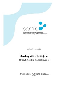 Johtopäätöksenä tultiin tutkimusta tehdessä siihen tulokseen, että sijoittaminen on osakeyhtiönkin näkökulmasta kannattavaa ja siitä saattaa olla monin tavoin hyötyä yrityksen muullekin liiketoiminnalle. Hyödyt saattavat olla suuremmat kuin riskit, kun sijoituskohteet pohtii tarkoin ja sijoittaa maltillisesti harkiten. This work explored the possible placement of a non-listed small company in the form of limited liability companies. The main business of the company is construction, plumbing and metal sectors. There was also a study of things that are important to consider before considering and starting to rank. In addition, which investment instruments could be found, and which or which of them could be suitable for the investment profile of the case-firm.