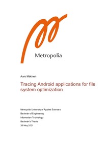 Insinöörityön päämääränä oli löytää mahdollisuuksia optimoida tiedostojärjestelmä. Tämän saavuttamiseen muutaman Android-applikaation tallennustilan käyttöä jäljitettiin Strace-nimisellä ohjelmalla. Jäljitys suoritettiin Sony Xperia X -älypuhelimella, jossa on vakio Android 10 -käyttöjärjestelmänä ja root-oikeudet annettu käyttäjälle. Tuotetulle logille luotiin lisäksi parserointiohjelma, jotta datan saa muutettua ihmiselle luettavaksi ja yhteenveto mahdollistuu.