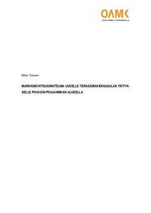 Tämän opinnäytetyön aiheena oli laatia markkinointisuunnitelma tulevaisuudessa aloittavalle terassirakennusalan yritykselle. Toimeksiantajana työssä toimin minä eli opinnäytetyön kirjoittaja. Tavoitteena oli selvittää yrityksen toimintamahdollisuuksia sekä luoda markkinointisuunnitelma, jota voidaan hyödyntää yritystoiminnan perustamisvaiheessa. Opinnäytetyö koostuu teoreettisesta ja toiminnallisesta osuudesta.