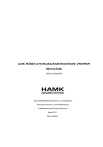Opinnäytetyö oli toiminnallinen ja sen tarkoituksena oli tuottaa monipuolinen ja kattava opas, jossa käsitellään leikki-ikäisen lapsen seksuaalisuutta ja seksuaalikasvatusta. Oppaan tarkoituksena oli tukea vanhempien antamaa seksuaalikasvatusta ohjaamalla vanhempia leikki-ikäisten lasten seksuaalikasvatuksessa. Opinnäytetyön tavoitteena oli löytää mahdollisimman monipuolista ja kattavaa tietoa leikki-ikäisen lapsen seksuaalisuuteen, seksuaalikasvatukseen ja seksuaalisuuden puheeksi ottamiseen liittyen. Tavoitteena oli myös selvittää, miten ammattilaiselta saatu tuki ja seksuaalikasvatus vaikuttavat leikki-ikäisen lapsen ja tämän perheen hyvinvointiin.