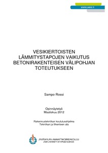 (Jyväskylän ammattikorkeakoulu, 2012)Opinnäytetyössä vertailtiin kahden erilaisen vesikiertoisen lämmitystavan vaikutusta asuinhuoneistojen välisen betonirakenteisen välipohjan toteutukseen. Tavoitteena oli saada tilaajalle kattava tietopaketti, joka sisältää ... -
