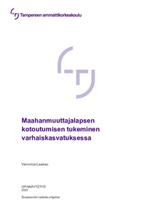 Opinnäytetyössä perehdyttiin maahanmuuttajalapsen kotoutumisen tukemiseen varhaiskasvatuksen näkökulmasta. Työn tarkoituksena oli kerätä varhaiskasvatuksen opettajien kokemuksia, mielipiteitä ja näkökulmia lapsen kotoutumisen tukemisesta. Lisäksi selvitettiin varhaiskasvattajien työkaluja ja -menetelmiä sekä heidän kehitysehdotuksiaan ja haasteitaan kotoutumisen tukemiseen liittyen.