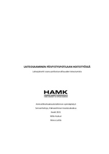 Toiminnallisen opinnäytetyön tarkoitus oli tuottaa Jokilaakson ensiavulle laiteajokortti, joka sisälsi neljä eri päivystyspotilaan hoitotyössä käytettävää laitetta, jotka olivat defibrillaattori, kapnometri, potilasmonitori sekä infuusioautomaatti. Laiteajokortin tarkoituksena oli tuottaa laitteiden käytön tueksi tietoa siitä, mitä laitteiden käytössä tulisi ottaa huomioon niitä käytettäessä. Laiteajokortin tuottamisen tavoitteena oli toteuttaa työkalu valittujen lääkintälaitteiden oikeaoppisen käytön tueksi ja sitä kautta edistää potilasturvallisuuden toteutumista päivystyspotilaan hoitotyössä. Tiedonhaku ja teoreettinen tietoperusta on tehty luotettavia ja mahdollisimman ajantasaisia lähteitä käyttäen. Lähteinä on käytetty sekä kirjallisuutta, että sähköisiä lähteitä.