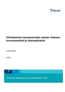 Tämän opinnäytetyön aiheena on rikoslain 11 luvun 10 §:n kiihottaminen kansanryhmää vastaan, jonka viimeisin muutos on astunut voimaan 13.5.2011. Tutkimuksessa on selvitetty rikoksen sääntelyn taustaa ja sen suhdetta sananvapauteen. Sananvapaus on vahva perusoikeus, jonka rajoittamiselle pitää olla erityinen syy.