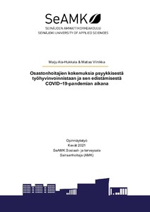 Tämän opinnäytetyön tavoitteena oli selvittää ja tuottaa tietoa, miten COVID−19-pandemia on vaikuttanut Seinäjoen keskussairaalan osastonhoitajien kokemuksiin heidän psyykkisestä työhyvinvoinnistaan ja miten tätä psyykkistä työhyvinvointia voitaisiin edistää mahdollisissa muissa poikkeusoloissa. Opinnäytetyön tarkoituksena oli perehtyä aiheeseen liittyvään ajankohtaiseen hoitotyön kirjallisuuteen ja tutkimuksiin, laatia tältä pohjalta haastattelukysymykset sekä haastatella osastonhoitajia heidän kokemuksistaan psyykkisestä työhyvinvoinnistaan ja sen edistämisestä COVID−19-pandemian aikana. Työ raportoitiin opinnäytetyön ja kirjallisten töiden ohjeiden mukaisesti.