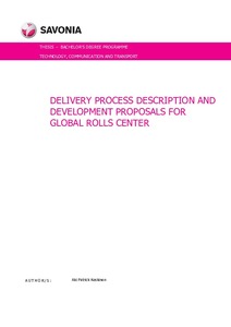 Process development in this thesis is based on process management, process modelling and process development theory. The delivery process of Global Rolls Center was modelled, and processes were divided into core and support processes. These processes were investigated and analyzed for recognizing development topics. Working methods for analyzing and searching development topics were project engineer interviews, studying feedback for Global Rolls Center, participating in on-going development projects, participating in