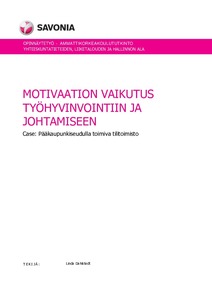 Tämän opinnäytetyön tarkoituksena oli selvittää kohdeyrityksen motivaation tilaa ja siihen ennalta määriteltyjen tekijöiden vaikutusta. Motivaatiota haluttiin tarkastella niin työhyvinvoinnin kuin myös johtamisen näkökulmasta. Nämä teemat rajattiin, jotta saataisiin kokonaisvaltaisempi kuva työpaikan toiminnasta ja motivaatioon vaikuttavista tekijöistä. Työpaikalla työhyvinvointi sekä johtaminen ovat myös olennainen osa työntekijän työmotivaatiota. Työn tarkoituksena oli antaa kohdeyritykselle ajantasaista tietoa yrityksensä henkilöstön motivaatiotilasta tutkimuksesta saatujen tietojen pohjalta ja näin ollen pohtia ratkaisuja tarpeiden mukaan. Toimeksiantajana tässä opinnäytetyössä oli pääkaupunkisedulla toimiva tilitoimisto. Opinnäytetyön teoreettinen viitekehys on rakennettu näiden kolmen teeman ympärille. Aluksi perehdytään motivaation perustaan, motivaatioprosessiin sekä kahteen motivaatioteoriaan. Työhyvinvoinnissa keskitytään muun muassa työmotivaatioon, työn imuun ja työyhteisön ilmapiiriin. Johtamisen osalta käydään läpi esimerkiksi johtamisen vaikutusta työyhteisöön sekä esimiehen tuen tärkeyttä. Tutkimus toteutettiin laadullisena tutkimuksena, johon osallistui koko yrityksen henkilöstö. Haastattelut toteutettiin yrityksen esi-miehelle sekä kolmelle työntekijälle. Aineisto kerättiin huhtikuussa 2021 teemahaastattelua käyttäen videoyhteyden avulla senhetkisen koronavirusepidemian takia. Teemahaastattelurunko pohjautui teoria-osassa käytyihin asioihin ja oli näin ollen jaettu kolmeen teemaan. Tutkimuksen pohjalta selvisi, että yrityksessä motivaation tila on yleisesti hyvällä tasolla. Tähän vahvasti vaikuttavana tekijänä on, että henkilöt pitävät aidosti työtehtävistään. Henkilöt kokivat, että työhyvinvointi sekä johtaminen olivat suhteellisen hyvällä tasolla. Kuitenkin tutkimuksessa tuli ilmi, että suurimpana motivaatioon negatiivisesti vaikuttavana tekijänä koettiin työpaikan ilmapiiri. Näiden tuloksien pohjalta laadittiin johtopäätökset, joiden avulla yrityksen on mahdollista edistää sekä ottaa paremmin huomioon henkilöstönsä motivaatiota, työhyvinvointia sekä johtamisen tasoa.