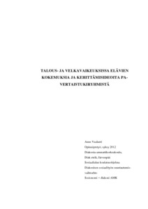 Anne Vaalanti. Talous- ja velkavaikeuksissa elävien kokemuksia ja kehittämisideoita PA-vertaistukiryhmistä. Syksy 2012. 63 s., 2 liitettä. Diakonia-ammattikorkeakoulu, Diak Etelä, Järvenpää. Sosiaalialan koulutusohjelma, Diakonisen sosiaalityön suuntautumisvaihtoehto, sosionomi (AMK) + diakonin virkakelpoisuus.