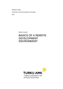 This thesis aims to research and explain the basic concepts related to a remote development environment, making it easy to understand and briefly go through the most important steps when implementing the findings from the research in a real-world environment. The research carried out in this thesis used the author’s prior knowledge on the subject as a basis and expanded that to suit the needs of the thesis when needed. Important subjects within the thesis include version control systems, workflow, server security, documentation, style guides and communication. In the practical implementation of the remote development environment, the thesis briefly examines essential tasks such as settings on the core software and how to implement the continuous integration functions.