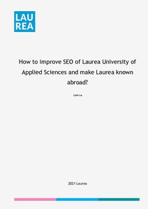 This thesis project is a case study about Search Engine Optimization in the international website of Laurea University of Applied Sciences, which is a higher education institution in Finland. This study aims to improve the rankings of Laurea’s websites in the Search Engine Result Pages (SERPs), to expand the school’s reach and increase prospective students’ awareness of the academy. Specifically, it investigates the factors that influence the school’s online visibility and ranking positions in the SERPs on Google. In this context, Search Engine Optimization (SEO) is a process of getting both the quality and quantity of website traffic from free, organic or natural search results on Google.
