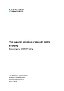 The supplier selection process in online sourcing : case company: SAS MNYTrading