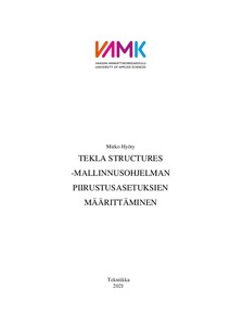 Opinnäytetyössä kerrotaan tietomallintamisesta ja kansallisista tietomalliohjeistuksista sekä toimintamalleista. Työssä käydään läpi mallinnusasetusten luontia, käyttöä ja piirustusasetusten määrittämistä. Opinnäytetyössä käytettiin aineistoina aiheeseen liittyviä verkkojulkaisuja, alan kirjallisuutta sekä tietomallinnusta käsitteleviä ohjeita ja suosituksia. Työssä käytettiin Tekla Structures -ohjelmaa. Työtä