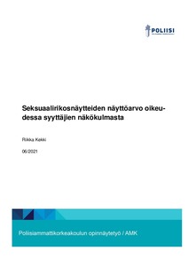 Tässä opinnäytetyössä esitetään syyttäjien näkökulmasta seksuaalirikosnäytteiden todistusteemoja ja näyttöarvoa osana seksuaalirikosten toteennäyttämistä oikeudessa. Opinnäytetyössä perehdytään myös seksuaalirikostutkimusten hyödyntämiseen jo esitutkintavaiheessa.