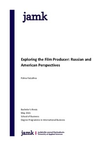 This thesis explores the profession of the film producer from Russian and American perspectives. This study aimed to determine what being a film producer means, what the responsibilities are, and how the producer can influence the success of the film. The producer’s role within a film production is considered somewhat obscure because the producer’s responsibilities vary depending on specific production circumstances, the scale of the project, the size of the budget, and other aspects of film production processes. At the same time, the power that the producer wields, and his or her actions, directly influence the film’s success.