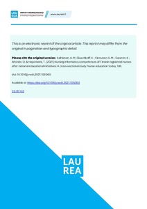 Atanga, Josephine; Mwangi, Caroline; Ghimire, Dibya (2022)Background: There is a global scarcity of healthcare workers, particularly in Western countries such as Finland resulting in a greater reliance on foreign-trained professionals to fill the gap in the nursing workforce. ...Rajoitettu käyttöoikeus / Restricted access / Tillgången begränsad -