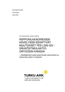 Pidemmän interventiojakson sekä yhdistetyn terapeuttisen harjoittelun seurauksena muutokset saattaisivat olla merkittävämpiä. Kuitenkin jo pelkkä ortoosin käyttö innosti tutkittavia pidempiin kävelymatkoihin ja -määriin, mikä itsessään on näissä tapauksissa kuntouttavaa toimintaa. This thesis is a case study with three clinical trial subjects, and it aims to receive user experiences of walking with FES L300 Go -electrical stimulation orthosis, give accurate information on gait on persons who suffer from drop foot symptom and raise awareness of the orthosis. Methods used in the study are semi-structured interview, diary, Fall Efficacy Scale – International, gait observation on video and gait analysis made with Zebris-pressure plates. Every evaluation method was used in the beginning of the study and after 30 days intervention period. Gait was evaluated without electrical stimulation orthosis and with it with normal walking pace of subjects.