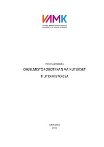 Opinnäytetyö tutki ohjelmistorobotiikan vaikutuksia suomalaisissa tilitoimistoissa. Tutkimusongelmina oli selvittää robotiikan yleisyyttä, käyttöönoton tai tämän sivuuttamisen syitä, käyttökohteita, hyötyjä ja riskejä sekä tilitoimistojen mielipiteitä kyseisestä asiasta.